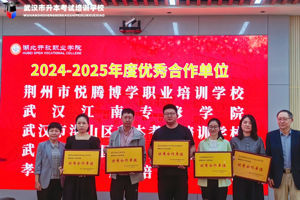 大会的最后环节是对优秀个人和集体的表彰。学校首先对2024级优秀毕业生进行了表彰,肯定了他们在读期间的优异表现。随后,大会颁发了“优秀合作单位”奖,感谢各教学点对学校工作的大力支持。我中心凭借扎实的教学服务与卓越的助学成果,荣获“优秀合作单位”奖,这也是湖北开放职业学院对我中心办学实力与服务品质的高度认可与肯定,我中心教务团队将紧随学校步伐,严谨落实每一项教学任务,为学员提供最贴心的指导。